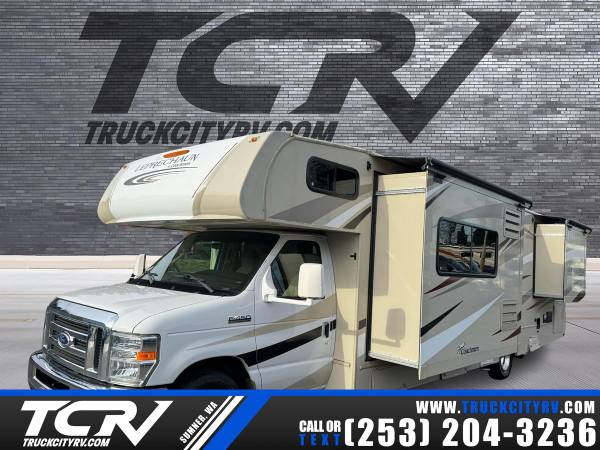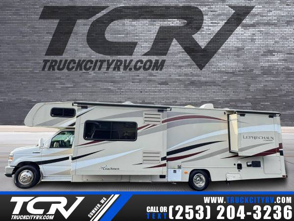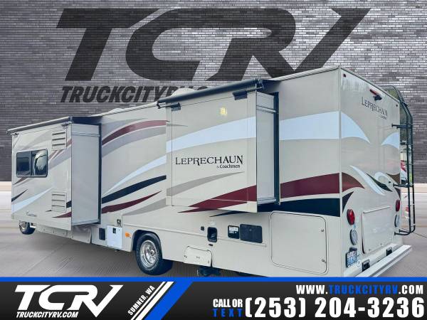 2017 Thor Leprechaun 32ft Class C Motorhome With Two Slides Only 30,359 Miles Ford V10 Triton Central Ducted Roof A/C And Heat Premium Cabinetry Turn Key Ready New Tires 3 Way Refrigerator, 3 Burner Stove, Microwave Oven Convection, and Cook Top Gas Grill Sofa and Dinet sleepers Rear Queen Walk Around Bed Satellite Dome Outdoor Tv's Power Awning Located at our Sumner location. WWW.TRUCKCITYRVSALES.COM Financing Available 253-750-4755
