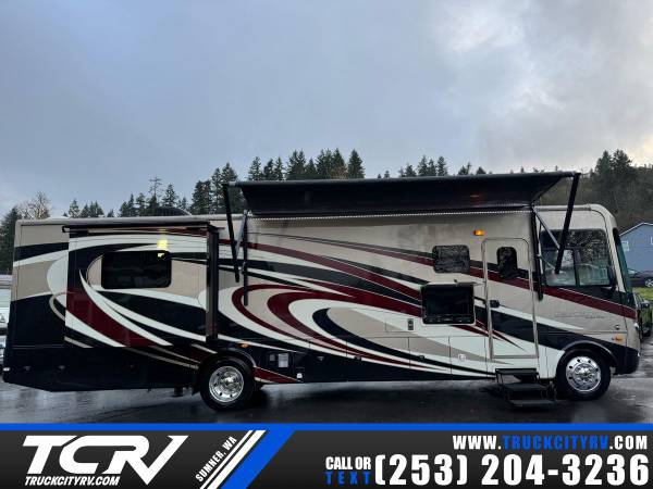 2018 Forest River Georgetown 37ft Class A Motorhome 3 SlidesBody: Class A 21,239 MILESTransmission: automatic Exterior color: Burgundy White Interior color: Tan 2018 FOREST RIVER GEORGETOWN 2 Slides Class A Sleeps Up To 6 Loaded With Options Only 21,239 Miles Ford V10 Onan 5500 Gen Queen size walk around bed, sofas Sleeper Fire Place Entertainment three burner, gas stoves, Corion marble tops, premium cabinetry, Fiberglass Roof Full Body Paint Automatic Leveling LED lighting financing AVAILIBLE truckcityrvsales.com truckcityrvsales.comWe'll generally update a vehicle as sold within 24 hours of sale. Please contact us with any questions and to verify availability.Truck City RV Sales 1621 W Valley Hwy E Sumner, WA 98390