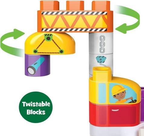 Kids can build using the easy-to-hold building blocks and double-sided learning blocks that feature tools and numbers.